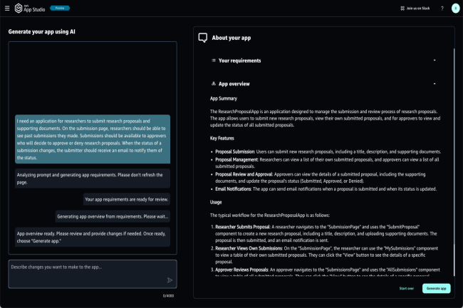 AWS a aussi présenté le service managé App Studio basé sur l’IA générative qui propose aux utilisateurs de créer et de déployer des applications à l’aide d’invites en langage naturel. « Avec App Studio, un utilisateur décrit simplement l’application qu’il veut, ce qu’il veut qu’elle fasse, et les sources de données avec lesquelles il veut s’intégrer, et App Studio construit une application en quelques minutes, alors qu’il aurait fallu plusieurs jours à un développeur professionnel pour créer une application similaire à partir de zéro », a déclaré AWS dans un communiqué. « Avec l’assistant d’IA générative d’App Studio, il n’est plus nécessaire d’apprendre à utiliser les outils low-code », a encore affirmé l’entreprise. Amazon App Studio pourrait rivaliser avec des offres concurrentes comme Vertex AI Studio de Google et Copilot Studio de Microsoft.