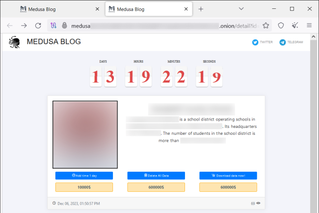 Sartrouville, Betton, Toyota, ces noms ont un point commun, ils ont été frappés par le groupe de ransomware Medusa. Ses activités ne faiblissent pas selon un rapport publié par Unit42 de Palo Alto Networks. Les experts ont découvert un blog du gang proposant de multiples solutions de paiement aux victimes. Le blog sert également à publier des données volées au cas où la victime refuse de payer la rançon. Sur le site « onion », auquel on peut accéder via le réseau Tor, la victime peut voir le « compte à rebours » avant la date d’exposition publique des données et de leur disponibilité en téléchargement, un tarif pour leur suppression et un tarif pour retarder leur divulgation (10 000 dollars).