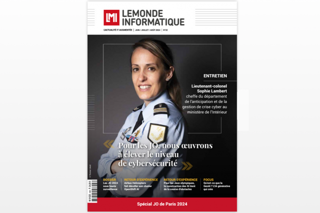 Numéro spécial JO 2024 pour ce LMI Mag 22, avec une interview de Sophie Lambert, lieutenant-colonel au COMCYBER-MI; avant les Jeux olympiques, les RSSI restent sous pression; SNCF Connect&Tech élargit son bug bounty en vue des JO 2024; les JO 2024 se jouent aussi dans la discipline logistique; sans oublier notre dossier sur des JO 2024 sous haute surveillance.