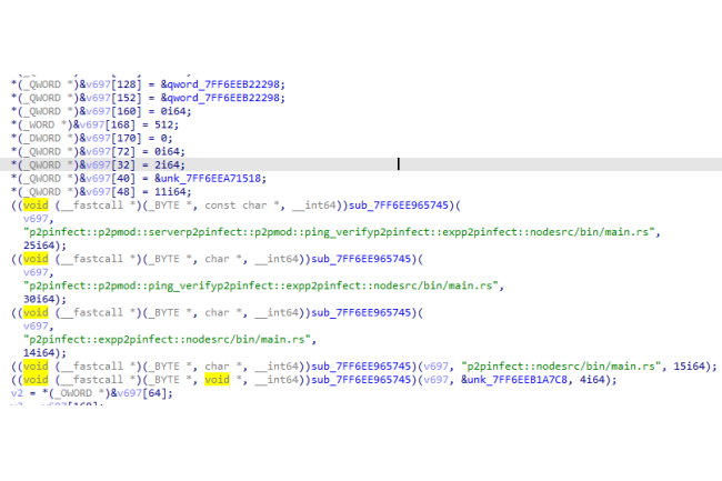 Une fois que le dropper principal de P2PInfect est déployé, il se connecte au réseau P2P et télécharge des informations sur le protocole de communication personnalisé, qui fonctionne sur TLS 1.3, ainsi qu’une liste des nœuds actifs dans le réseau. Il met également à jour le réseau avec ses propres informations et choisit un port de communication aléatoire. Le fait que le ver utilise un protocole de commande et de contrôle point à point et des numéros de port aléatoires pour chaque nœud le rend résistant aux tentatives de débranchage (takedown), car il n’y a pas de point de défaillance central. Ses communications sont aussi plus difficiles à bloquer par des pare-feux, parce qu’il n’y a pas de port spécifique pour arrêter son trafic. Le ver est écrit en Rust, un langage de programmation moderne multi-plateformes, connu pour la sécurité de sa mémoire et de ses types, ce qui l’a rendu populaire dans les grandes entreprises. Les chercheurs ont pu observer le dropper P2PInfect en train d’infecter des instances Redis sous Linux et Windows et de déployer des charges utiles supplémentaires écrites en Rust. Certaines d’entre elles sont nommées linux, miner, winminer et windows.