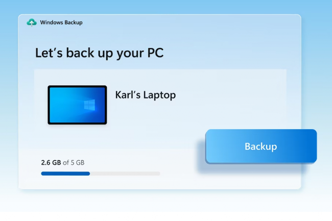 Le service Backup permet de stocker facilement ses données personnelles sur OneDrive, avec 5 Go gratuits. (Crédit: Microsoft)