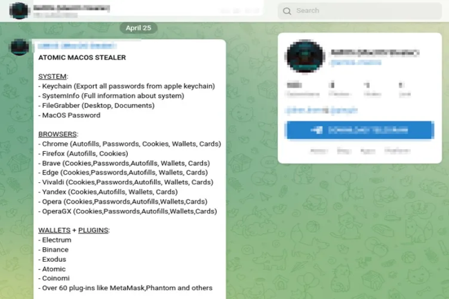 La croissance des environnements Mac aiguise les appétits des cybercriminels. Une étude menée par Cyble Research and Intelligence Labs (CRIL) met en lumière le malware AMOS pour Atomic macOS Stealer. Comme son nom l’indique, il s’agit d’un voleur de données notamment les mots de passe ou les fichiers du bureau, ainsi que les éléments du dossier Documents. Il cible aussi les navigateurs à la recherche d’identifiants, de numéros de carte de crédit, des cookies, ainsi que les portefeuilles de cryptomonnaies d’Atomic, Binance, Coinomi, Electrum, Exodus et autres