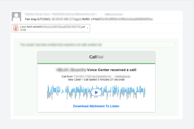 Dans les campagnes analysées par Varonis, les cybercriminels ont utilisé un script PowerShell pour diffuser de faux messages de messagerie vocale, accompagnés d’un fichier PDF contenant un QR code. Celui-ci redirige les victimes vers un site conçu pour dérober leurs identifiants Microsoft. L’attaque repose sur plusieurs facteurs : l’absence d’authentification requise, la capacité à usurper l’adresse d’un utilisateur interne, et la tolérance de l’infrastructure Microsoft à ce type d’envoi dès lors que le destinataire appartient au même environnement organisationnel.