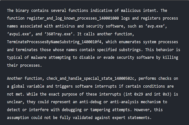 L’agent commence par identifier le type et la structure du fichier, puis reconstruit le graphe de flux de contrôle du logiciel à l’aide d’outils tels que angr et Ghidra. Il analyse les fonctions clés via une API, construisant une « chaîne de preuves » détaillée pour montrer comment il est parvenu à son verdict. Un validateur intégré recoupe les résultats avec les contributions d’experts afin de garantir leur exactitude avant que le système ne classe le logiciel comme malveillant ou bénin.