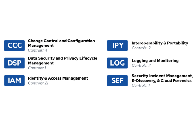 • Contrôle des changements et gestion de la configuration ;• Sécurité des données et gestion du cycle de vie de la confidentialité ;• Gestion des identités et des accès ;• Interopérabilité et portabilité ;• Journalisation et surveillance ;• Gestion des incidents de sécurité, investigation informatique et analyse forensic du cloud.