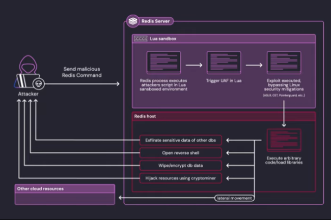 Pour expliquer la faille, il faut savoir qu’en plus d’être un data store, Redis sert à exécuter des scripts écrits dans le langage de programmation Lua. Cette fonctionnalité propose aux applications d’exécuter certaines de leurs logiques liées aux données directement dans la base de données. Les scripts tournent dans un bac à sable, mais la faille CVE-2025-49844 permet aux attaquants de contourner cette contrainte et d’exécuter du code arbitraire directement sur le serveur sous-jacent.