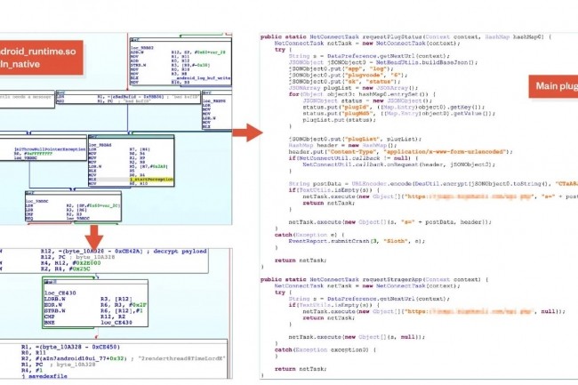 L’installation de logiciels malveillants sur les terminaux Android peut se produire chez des partenaires tiers engagés par des fabricants pour améliorer l’OS de leurs produits. Dans son analyse de Guerrilla, Trend Micro indique qu’une entreprise qui produit des composants de firmware pour les téléphones mobiles, produit également des composants similaires pour Android Auto, une app mobile Android utilisée sur les tableaux de bord d’information et de divertissement des véhicules. « Cela étend les possibilités d’infection et il est probable que certains systèmes de divertissement embarqués sont déjà infectés », a déclaré Trend Micro dans son étude. C’est après avoir pris connaissance des rapports de compromission touchant des smartphones que l’éditeur a commencé à s’intéresser à Guerrilla, et ses chercheurs ont extrait l’image ROM d’un téléphone infecté pour l’analyser. « Nous avons trouvé une bibliothèque système appelée libandroid_runtime.so qui a été altérée pour injecter un extrait de code dans une fonction appelée println_native », a expliqué le fournisseur en sécurité.
