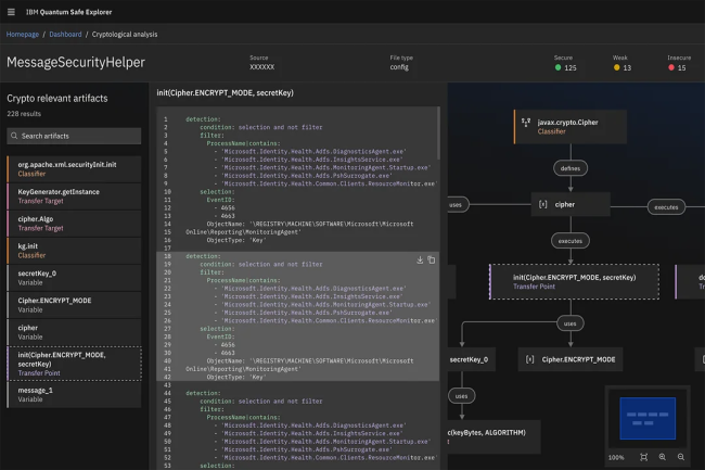« Le nouvel ensemble de fonctionnalités d’IBM doit aider les clients à se préparer à l’ère post-quantique de trois manières principales », a déclaré l’entreprise dans un communiqué de presse. En premier lieu, big blue présente Quantum Safe Explorer. Cet outil analyse le code source et le code objet pour localiser les actifs cryptographiques, les dépendances et les vulnérabilités, et créer une nomenclature de chiffrement (CBOM). Les équipes peuvent visualiser et agréger les risques potentiels en un lieu centralisé.