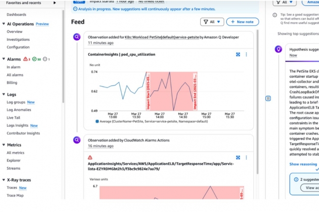 Le fournisseur cloud américain ajoute une fonction d’alertes automatisées à son assistant GenAI dans les investigations CloudWatch. Objectif : fournir une analyse post-mortem liée à des incidents pour améliorer leur compréhension et accélérer le temps de rétablissement.