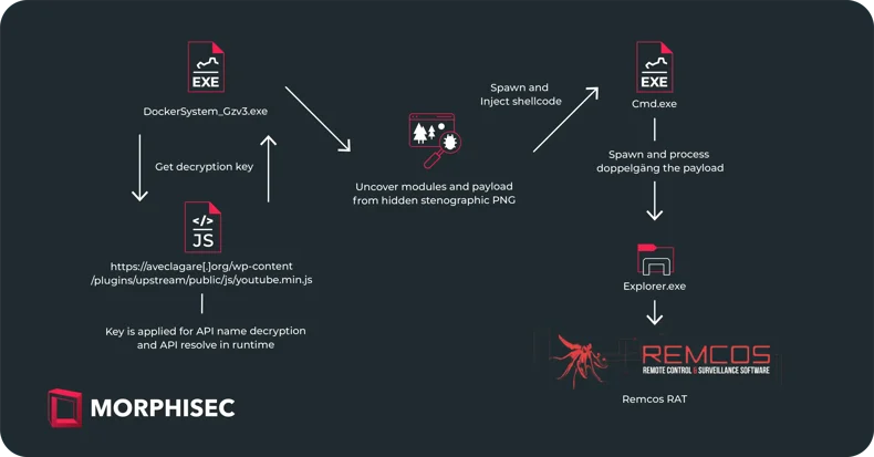 Les chercheurs ont retracé le processus d’infection via la stéganographie. (Crédit Photo : Morphisec)