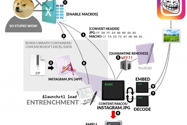 Connu sous le nom d’Instegogram, ce moyen de compromission consiste ainsi à utiliser les réseaux sociaux, Instagram en particulier, comme site de commande et de contrôle d’un acteur malveillant. Instegogram est unique en ce sens qu’une fois le système distant compromis, il est possible de poster des images codées à partir d’un serveur de commande avec l’API d’Instagram. Le système distant téléchargera l’image, la décodera, exécutera les commandes codées, codera les résultats dans une autre image et les renverra sur Instagram. Créée à des fins de recherche, l’utilisation potentielle du stratagème Instegogram dans le cadre d’une attaque de logiciels malveillants pose la question de savoir qui serait responsable d’une telle attaque.