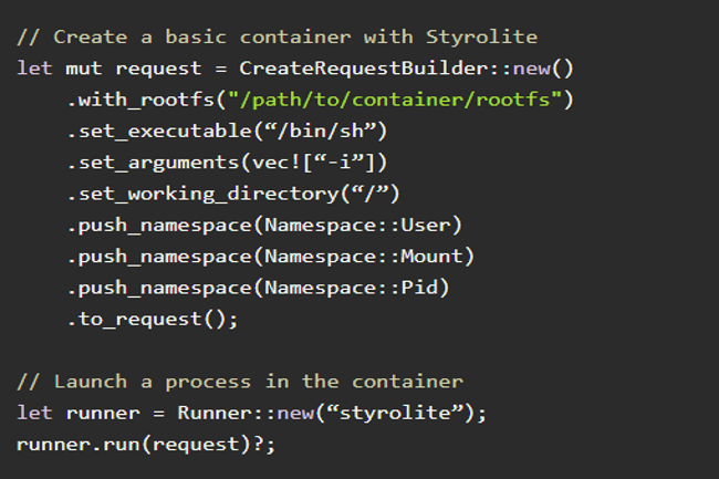 Styrolite n’est pas le premier outil de sandboxing des runtimes de conteneurs. Bubblewrap est le plus connu, et ce projet de sandboxing de conteneurs de bas niveau est communément utilisé pour les constructions Fedora et RPM. « Ces outils sont soit de trop haut niveau (comme l’IRC de Kubernetes), soit il faut les utiliser via des scripts shell », a précisé Mme Conill. « Si avec les CLI, on peut itérer rapidement, nous voulions construire une interface programmatique riche pour le spawning et la gestion des conteneurs. »