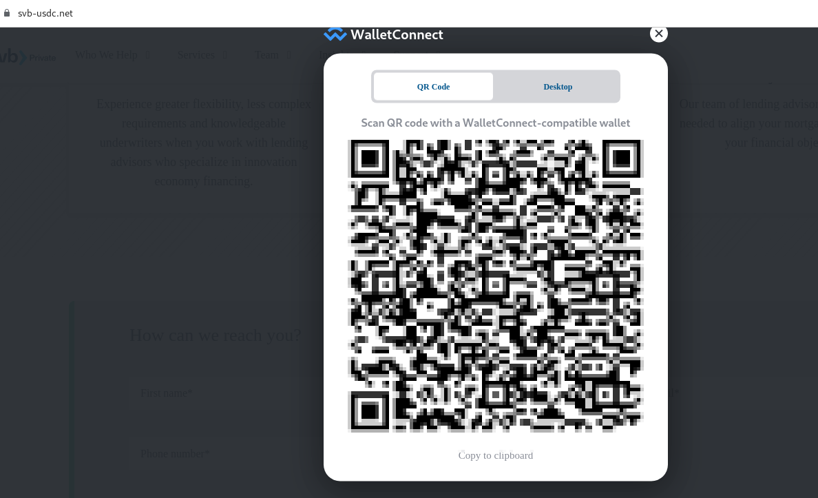 Mais les acteurs de la menace n’ont pas seulement enregistré des domaines suspects. Ils se sont aussi lancés dans d’autres types d’escroqueries. Plusieurs sont liées à la crypto-monnaie et ont déjà été identifiées par la CRIL. Dans l’une d’elles analysée par les chercheurs en sécurité, des sites de phishing comme svb-usdc[.]com, et svb-usdc[.]net ont mis en place de faux programmes de récompense USD Coin (USDC). Ces sites prétendent que la banque distribue activement des USDC dans le cadre du programme de remboursement SVB USDC aux détenteurs d’USDC éligibles. L’USDC ou USD Coin est un stablecoin indexé au dollar américain. « Ils cherchent à voler de la crypto-monnaie sur le compte de la victime en lui offrant de l’USDC gratuit », a déclaré la CRIL dans son rapport. Sur le site de phishing, quand l’utilisateur clique sur le lien « cliquer ici pour faire votre réclamation », un QR code s’affiche. « L’utilisateur est invité à scanner le QR code en utilisant n’importe quel portefeuille de crypto-monnaie, tel que Trust, Metamask ou Exodus. Cependant, le fait de scanner le code entraînera la compromission du compte du portefeuille de l’utilisateur », a déclaré la CRIL dans son rapport.