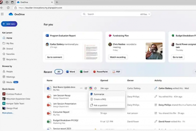 La plateforme de stockage et de partage de documents dans le cloud OneDrive de Microsoft s’enrichit de fonctions d’IA générative, d’une recherche améliorée et d’outils d’administration pour mieux sécuriser les fichiers sensibles.