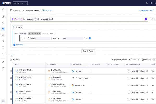 L’outil de recherche d’Orca Security utilise des requêtes en langage naturel pour identifier les vulnérabilités de type Log4j.