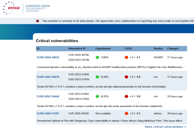 La base EUVD de l’Enisa fait ses premiers pas. (Crédit Photo : Enisa)