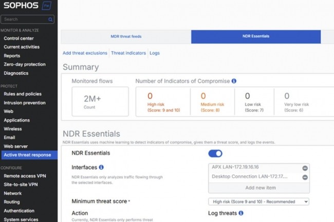 Le point fort de la dernière version Firewall de Sophos est l’intégration avec NDR Essentials, une autre offre de l’éditeur de sécurité. L’ajout est gratuit pour tous les clients ayant souscrit une licence XStream Protection pour Firewall.