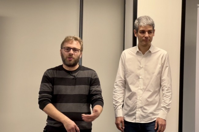 Deux des trois cofondateurs de Biomemory, Pierre Crozet (CTO) et Erfane Arwani (CEO). (Crédit : S.L.)