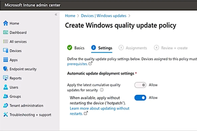Pour cela, il déploie les patchs de sécurité en corrigeant le code en mémoire des processus en cours d’exécution, sans les redémarrer après chaque installation. Microsoft indique :« avec les mises à jour à chaud, vous pouvez rapidement prendre des mesures pour protéger votre entreprise contre les cyberattaques, tout en minimisant les perturbations pour les utilisateurs. Vous devez d’abord créer une politique de mise à jour, puis l’activer par hotpatch dans Windows Autopatch via la console Intune ».